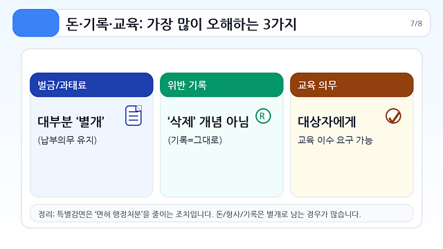 - “사면되면 벌금/과태료도 없어짐” → 행정처분 감면과 별개일 수 있음